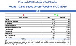 As of Jan. Feb. 4, 653 deaths — a subset of 12,697 total adverse events — had been reported to the Centers for Disease Control and Prevention’s (CDC) Vaccine Adverse Event Reporting System (VAERS) following COVID-19 vaccinations. The numbers reflect reports filed between Dec. 14, 2020 and Feb. 4, 2021.