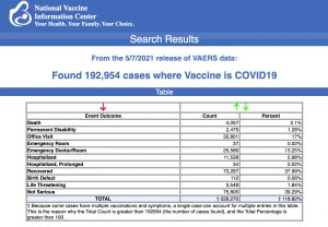 Every Friday, VAERS makes public all vaccine injury reports received as of a specified date, usually about a week prior to the release date. Today’s data show that between Dec. 14, 2020 and May 7, a total of 192,954 total adverse events were reported to VAERS, including 4,057 deaths — an increase of 220 over the previous week — and 17,190 serious injuries, up 1,176 since last week.