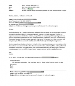 There was a conspiracy involving Daszac, Fauci and others to push the natural origin theory. (See other emails in the recent drop.)