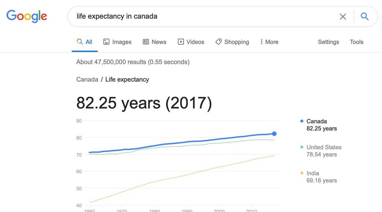 Do you know what the life expectancy in Canada is? 82.25